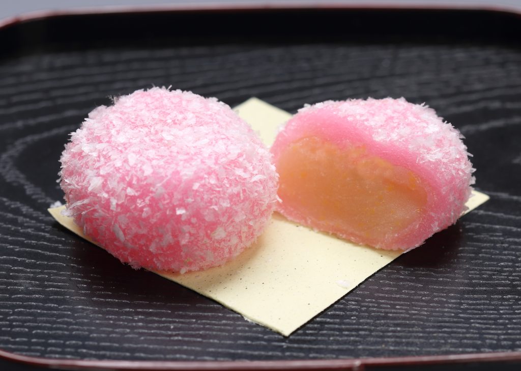 やわらかいお餅の中は黄身あんをいれています。やわらかい食感と甘い風味をお 口の中で楽しんでください。今の上皇、上皇后様が天皇、皇后両陛下時代に湯村温泉に来られた際に召し上がれた一品です。