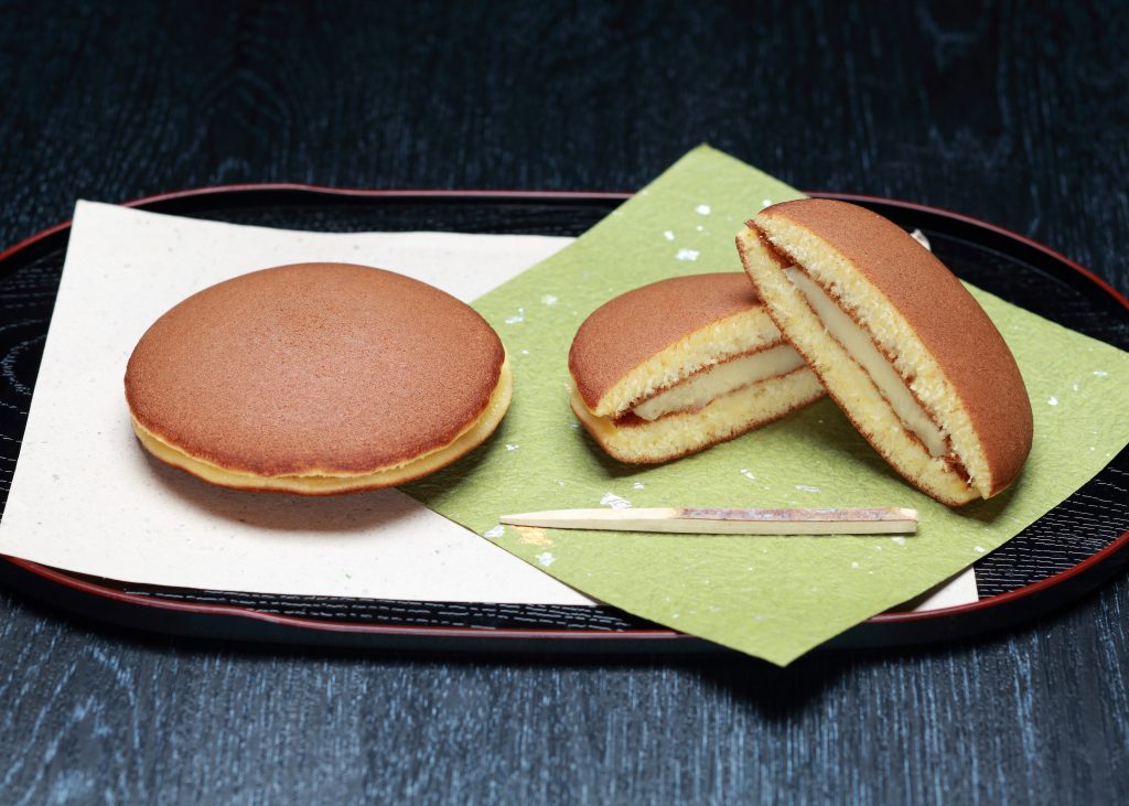 どらやきの皮は弾力のある食べごたえです。サンドしたクリームはミルクあんとクリームチーズを混ぜた少し甘い感じになっています。お茶にもコーヒーにも合う新感覚のどら焼きです。